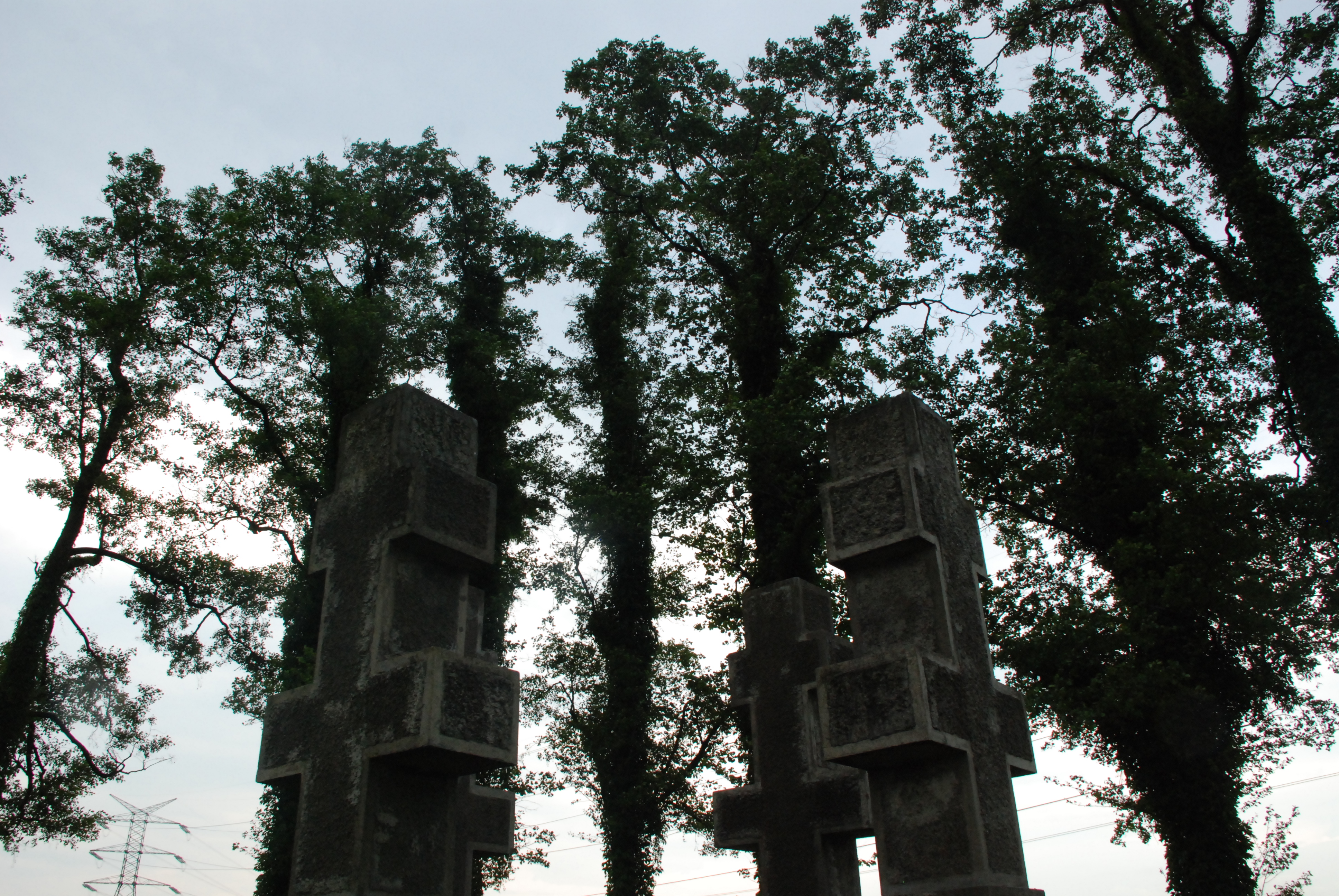A na cmentarzu katolickim inne skrzyżowanie dróg. proste, stare groby mieszkanców Żabna i powojenne grobowce - bunkry.